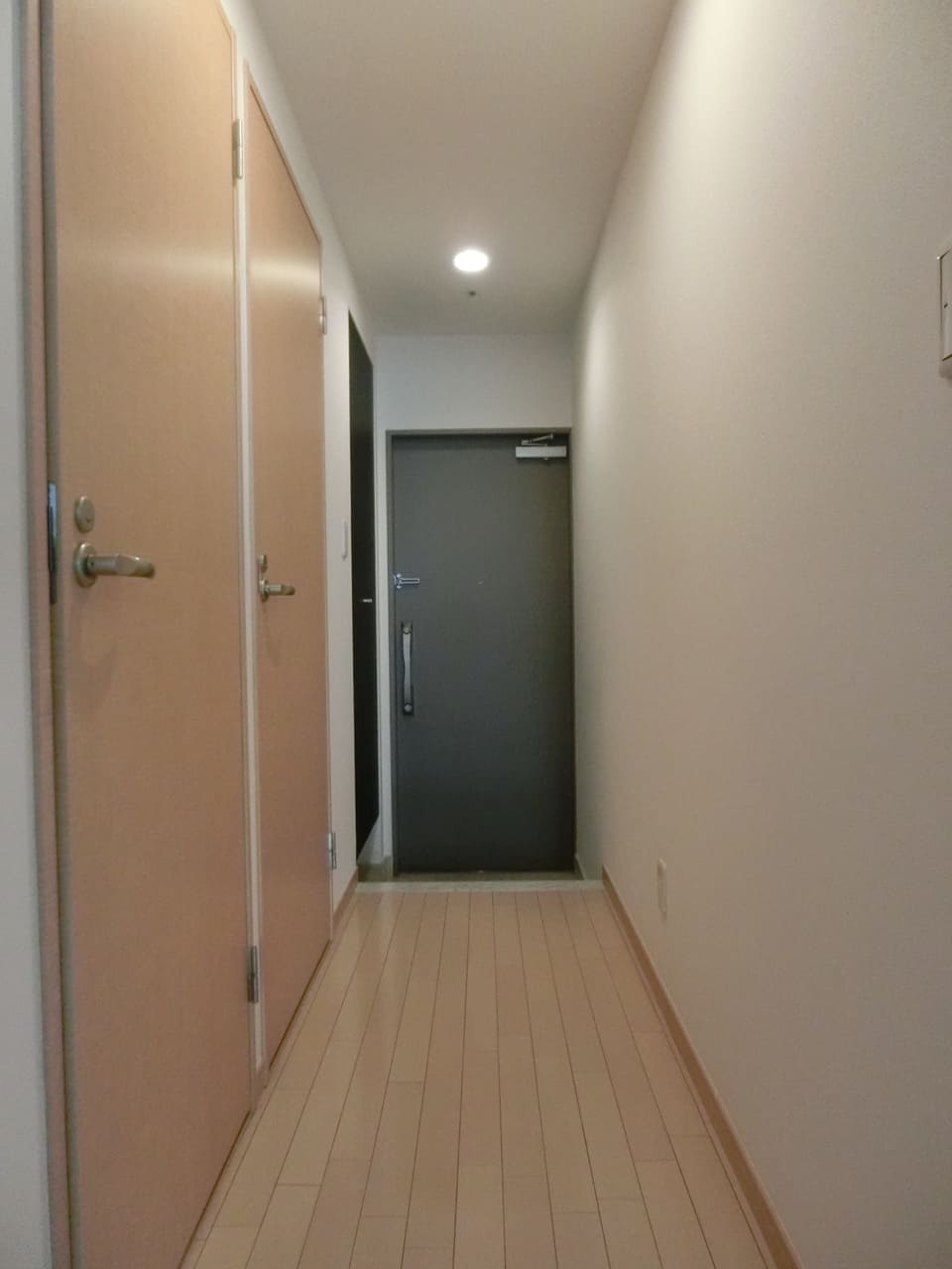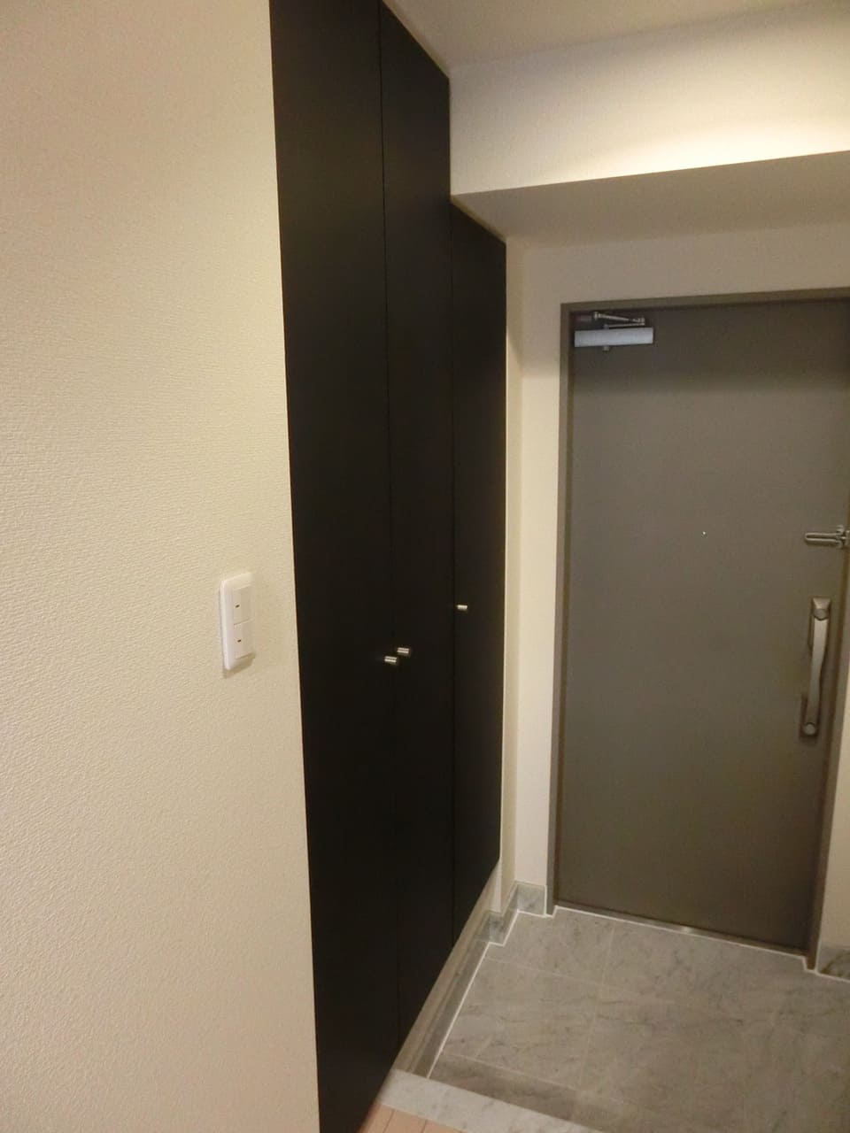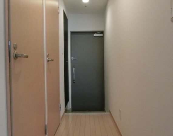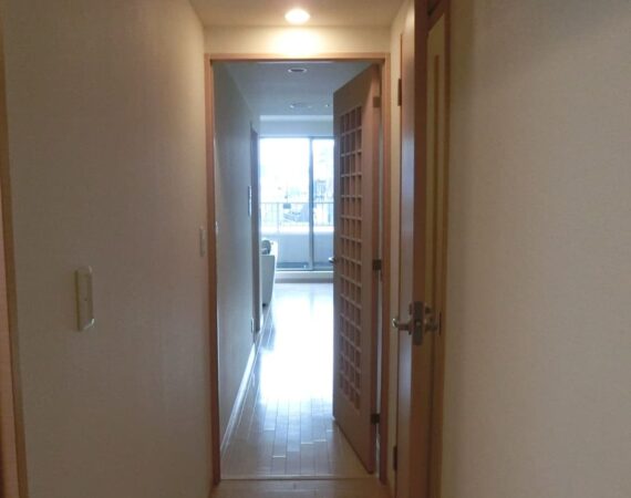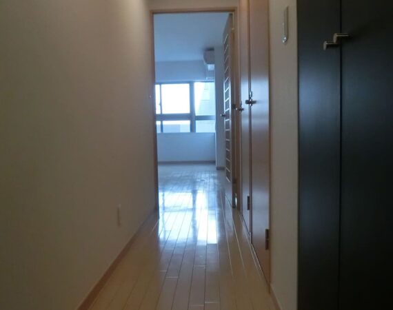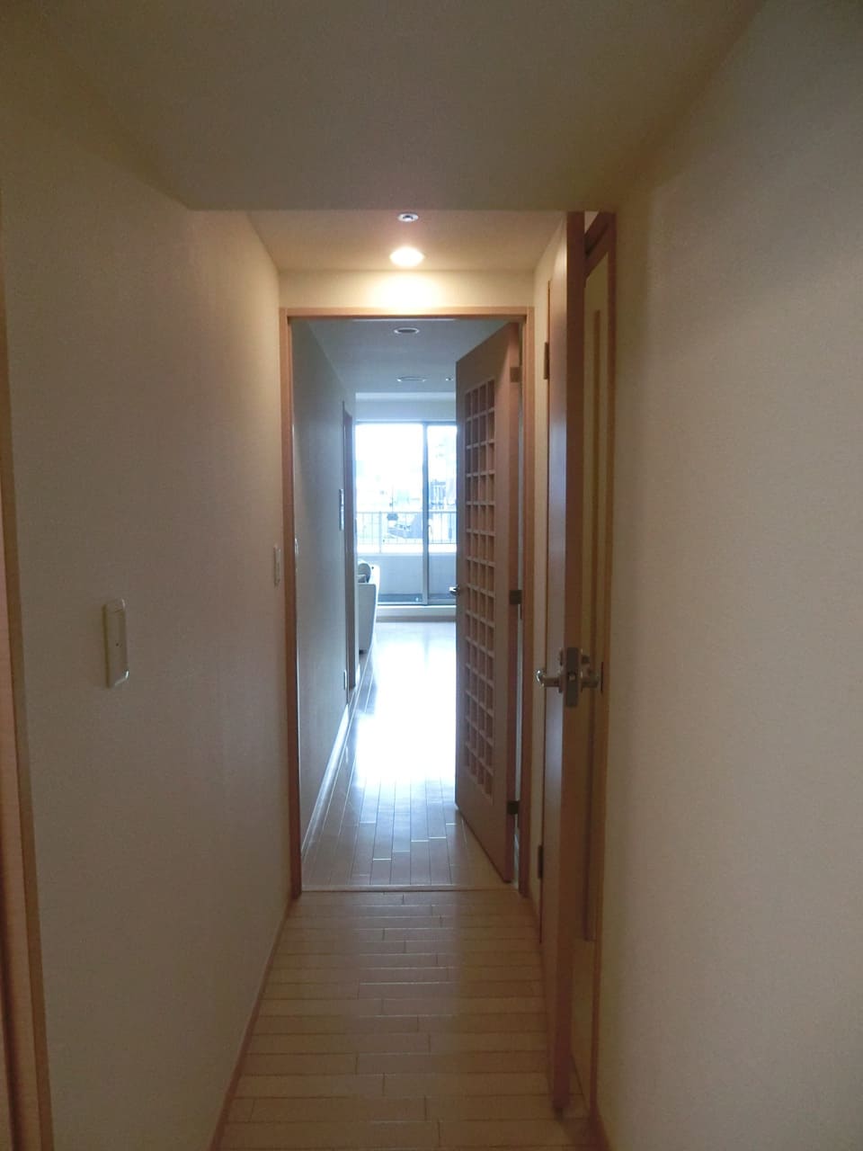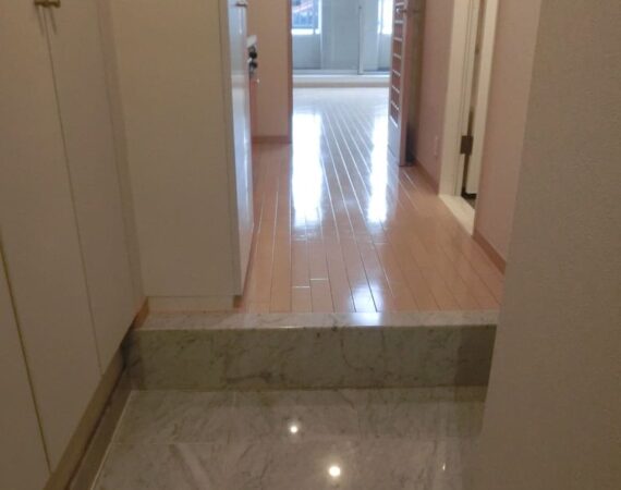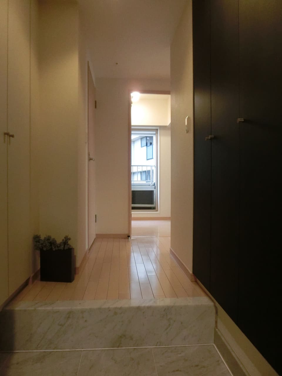 玄関は大理石調タイルが採用され、コンパクトながら上品な雰囲気で来客時の印象も良好。廊下から居室へと続く動線はすっきりとしており、生活感が出にくいレイアウトとなっています。